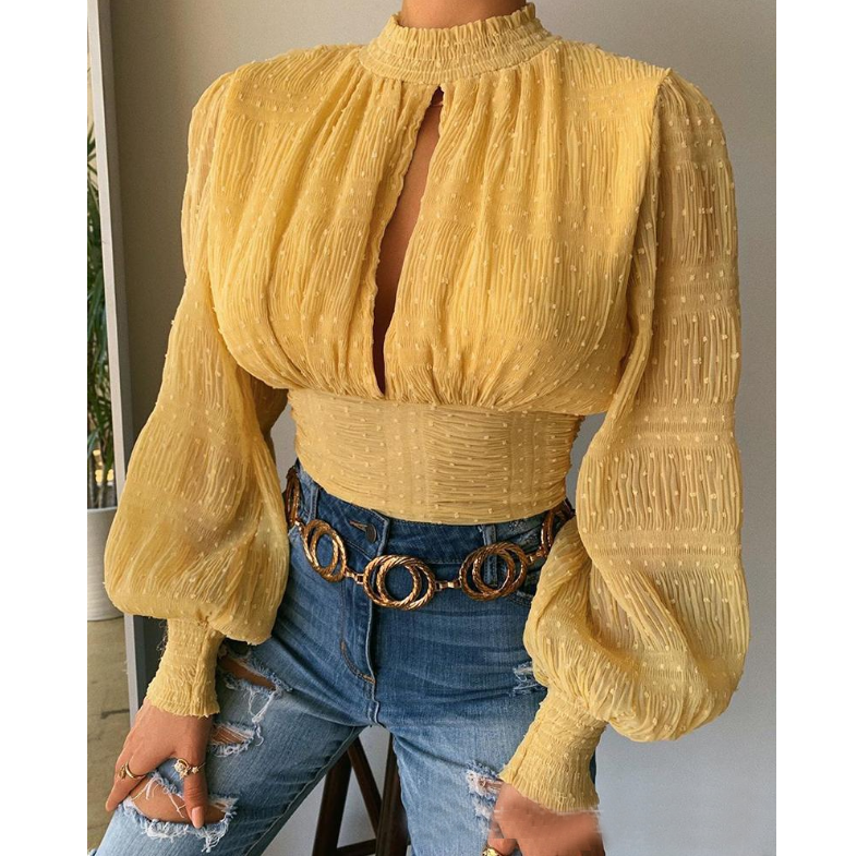 Material: Blended Gender: Women Item Type:Tops Sleeve Length:Long Sleeve Color: Yellow Size: S, M, L, XL