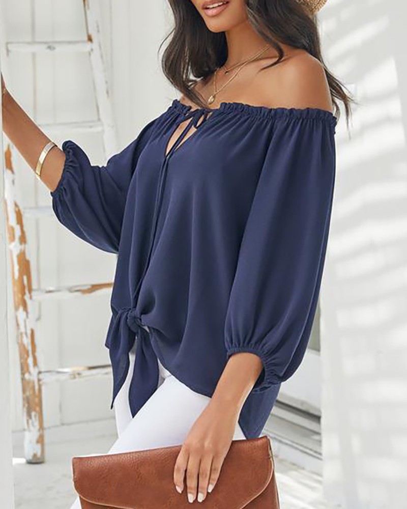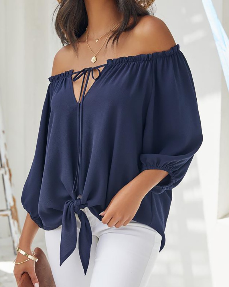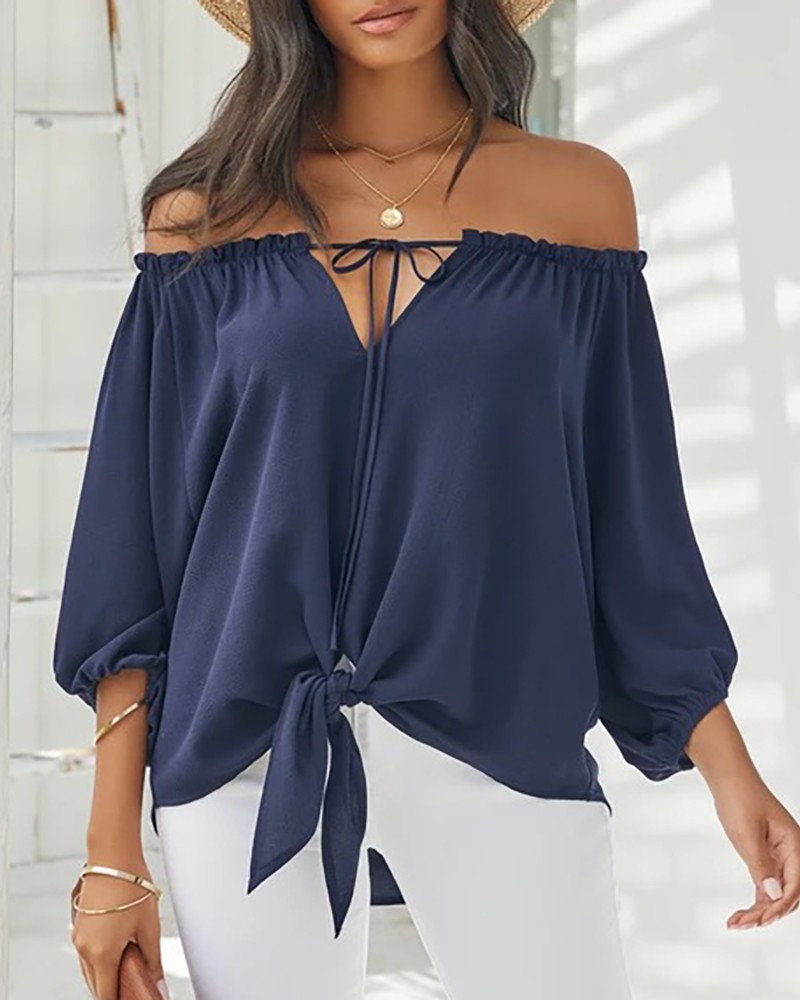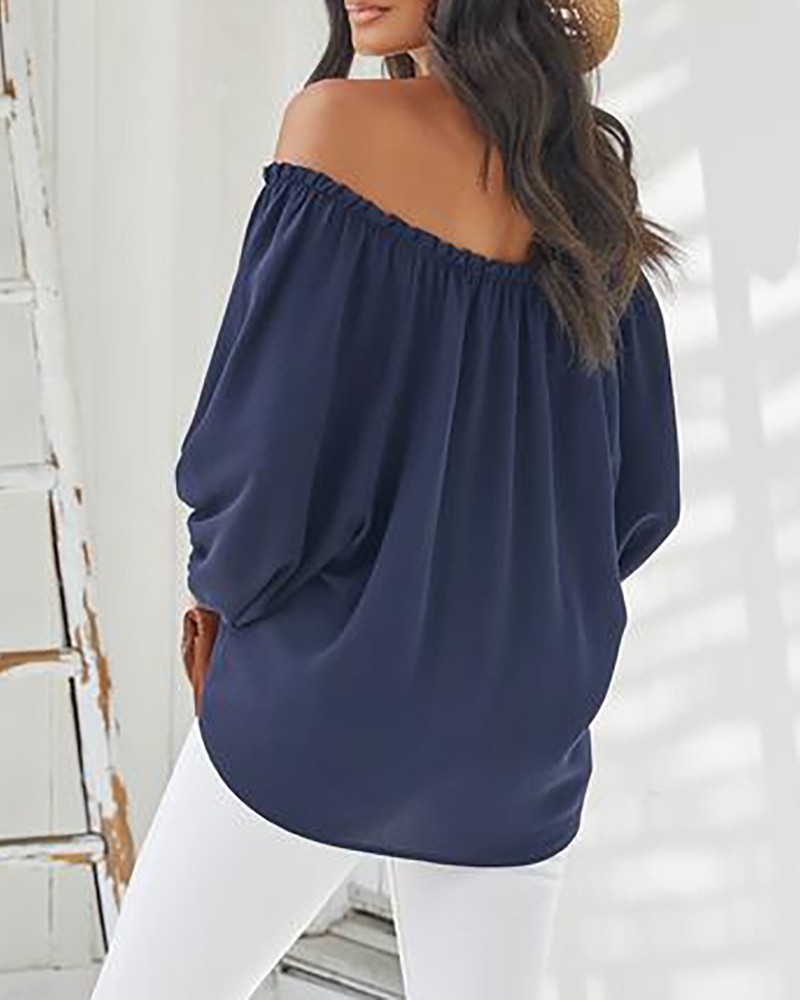 Sexy V-Neck Casual Long-Sleeved Solid Color Top