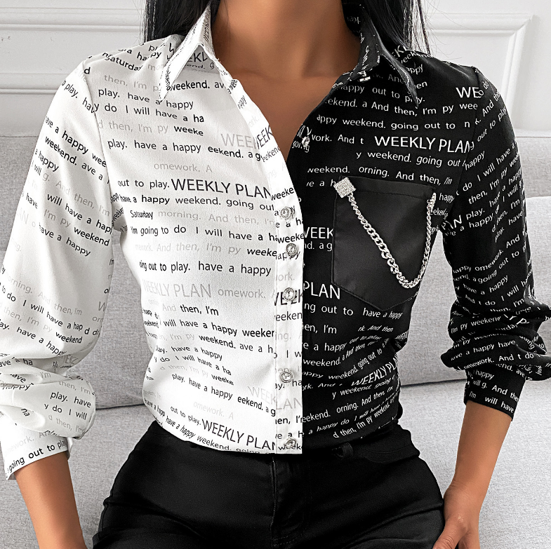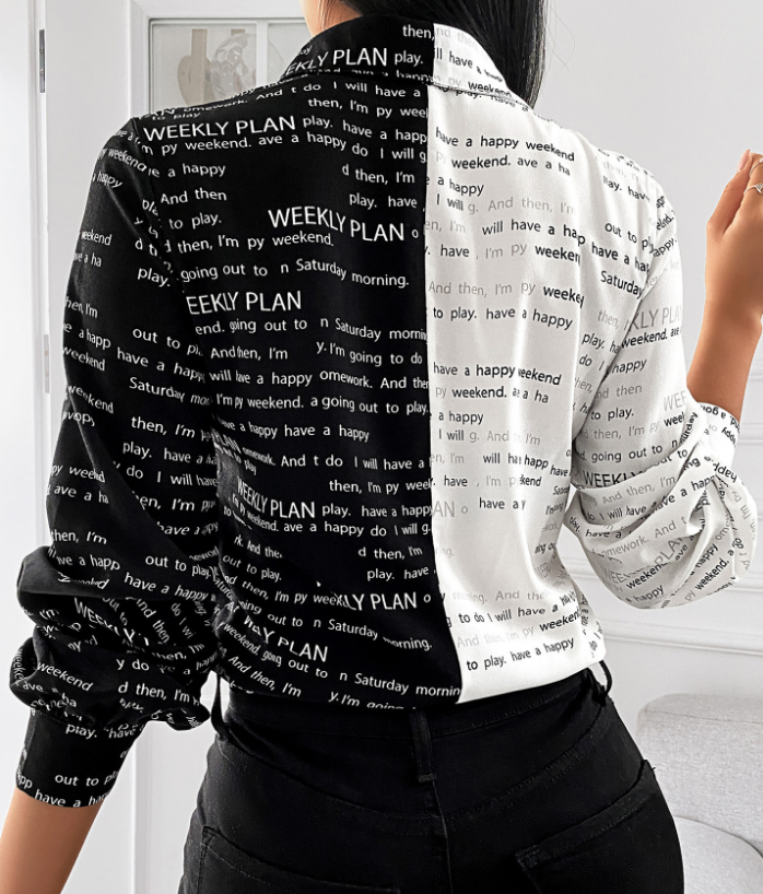 Slim Chiffon Printed Letter Long Sleeve Shirt Top