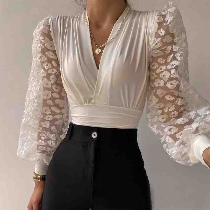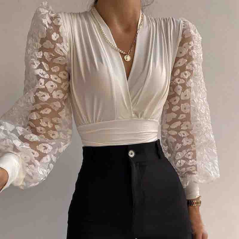 Women'S White Splicing Lace Casual Top