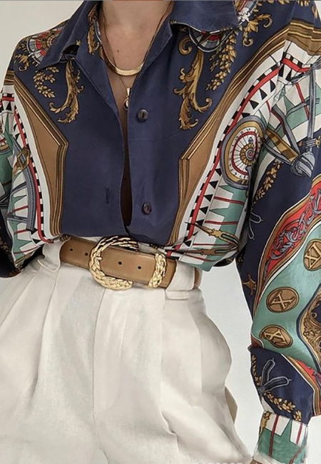 Fashion Women'S Printed Long Sleeve Casual Shirt Top