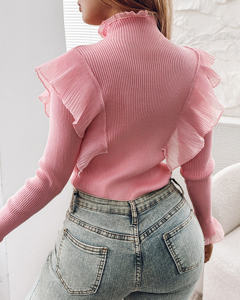 Women'S Fashion Long Sleeves Ruffled Pink Top