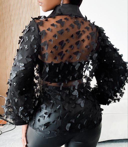 Embroidered Solid Color V-Neck Long Sleeved Shirt