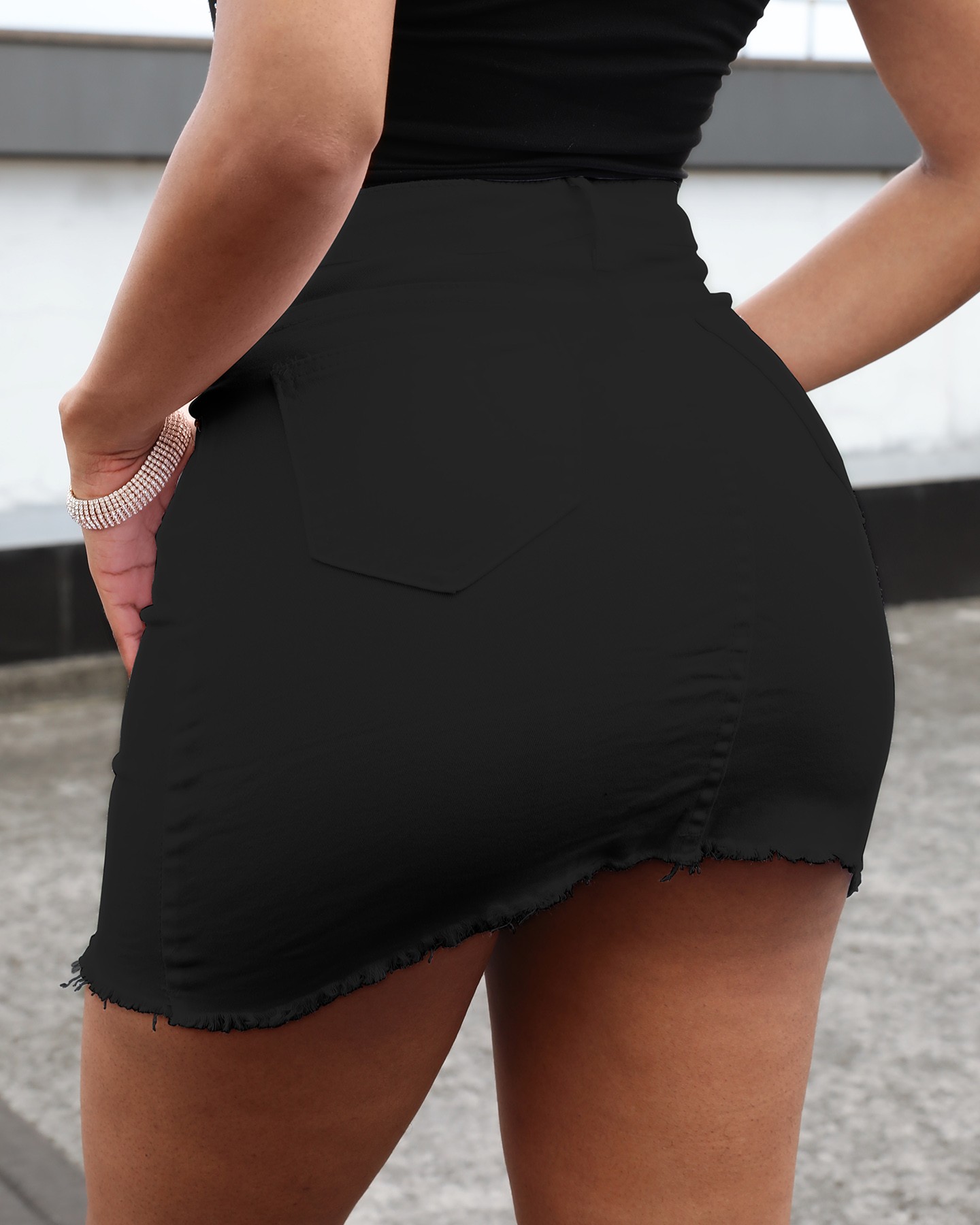 Women'S Fashion Retro Irregular Ripped Denim Skirt