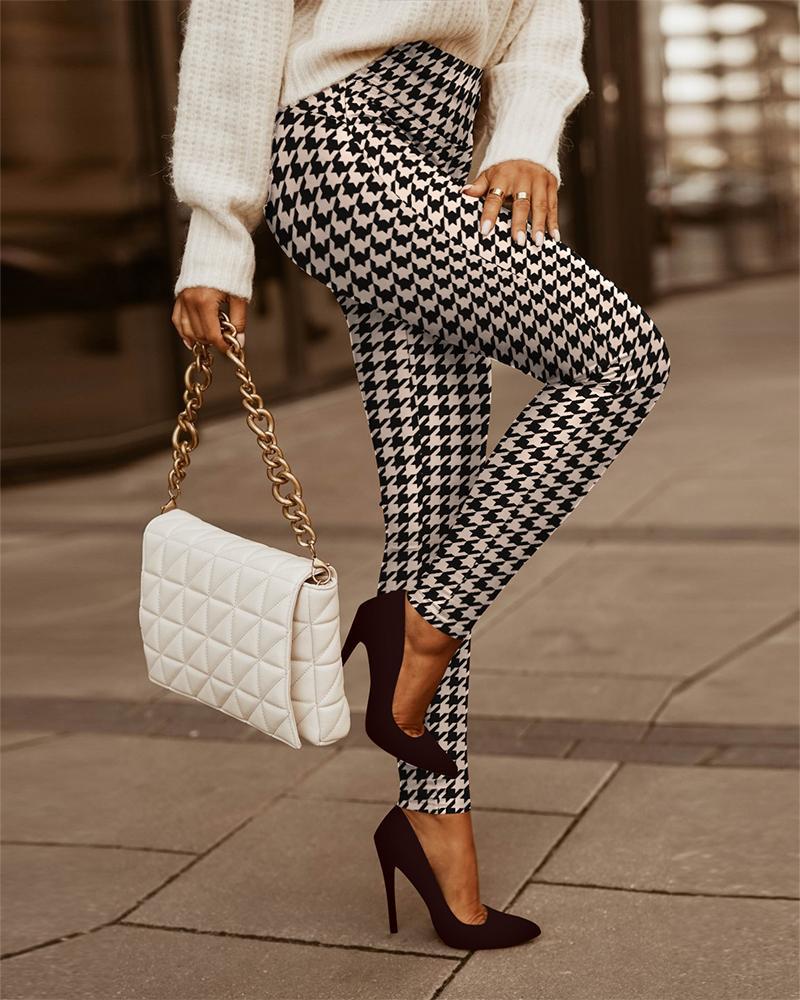 Hip-Lifting Stretch Houndstooth High-Waisted Pants