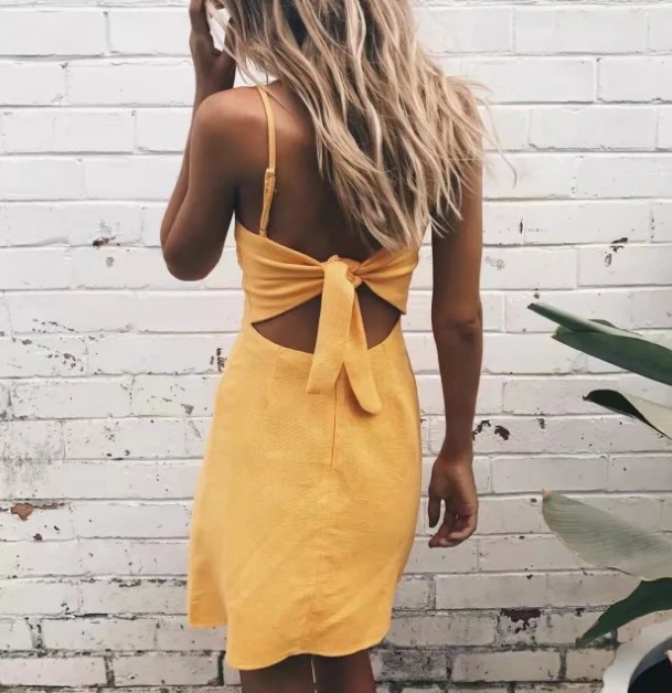 Material: Polyester Gender: Women Item Type:Dress Sleeve Length: Sleeveless Color: White, Yellow, Green Size: S, M, L, XL