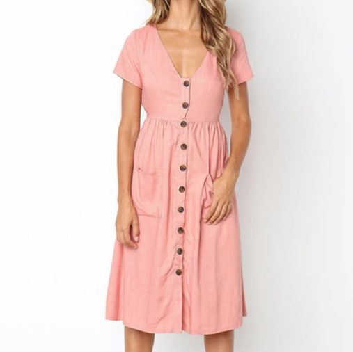 Material: Polyester Gender: Women Item Type:Dress Sleeve Length: Short Sleeve Color: Pink, Red, Black Size: S, M, L, XL