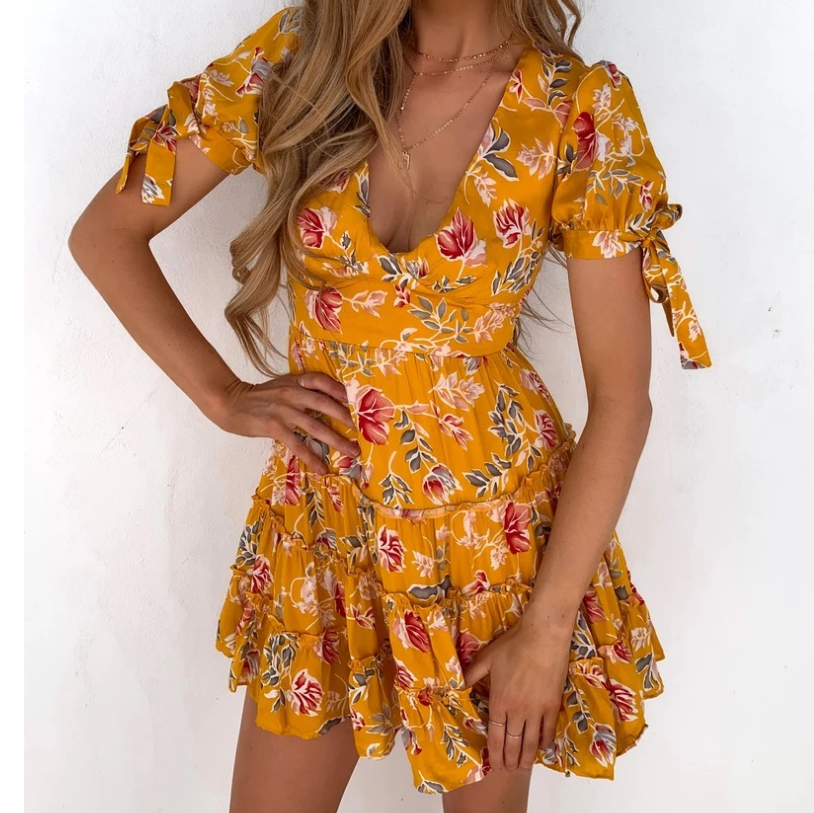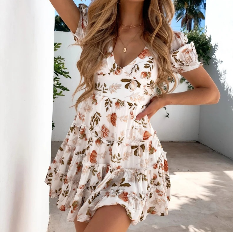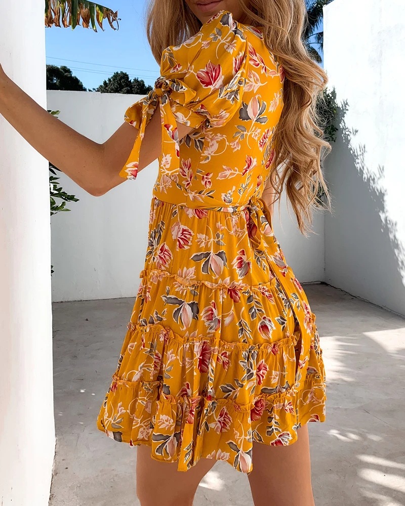 V-Neck Print Short Sleeve Dress