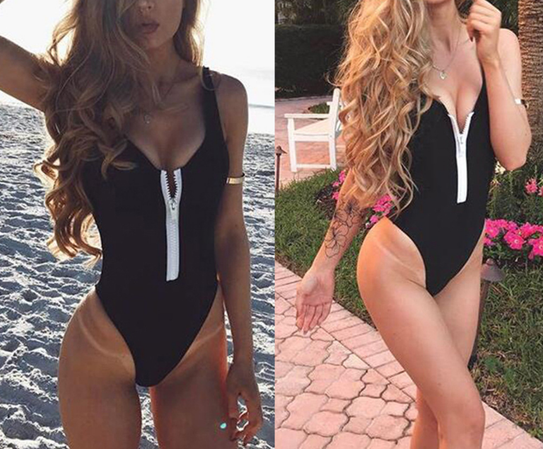 Woman'S Zipper Solid One-Piece Suits Swimwear