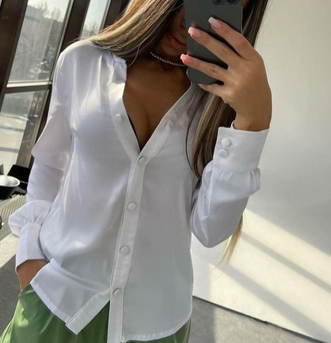 Solid Color Long Sleeve V-Neck Chiffon Two-piece Suit