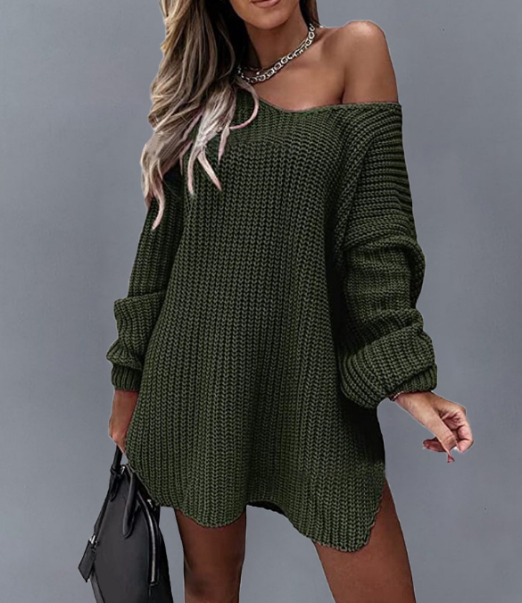 Solid Color Fashion Women'S White Long Sleeve Woolen Dress