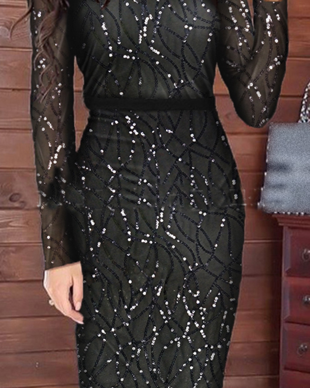 Fashion Temperament Pearl Mesh Long Sleeve Dress